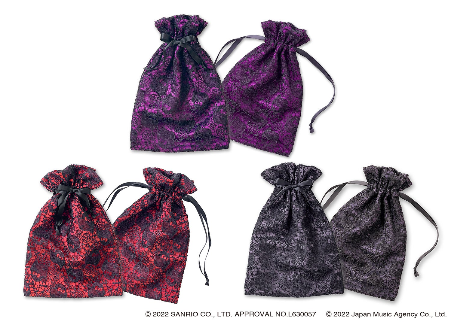 ▼巾着(3カラー:パープル、レッド、グレー) 各3,300円(税込)