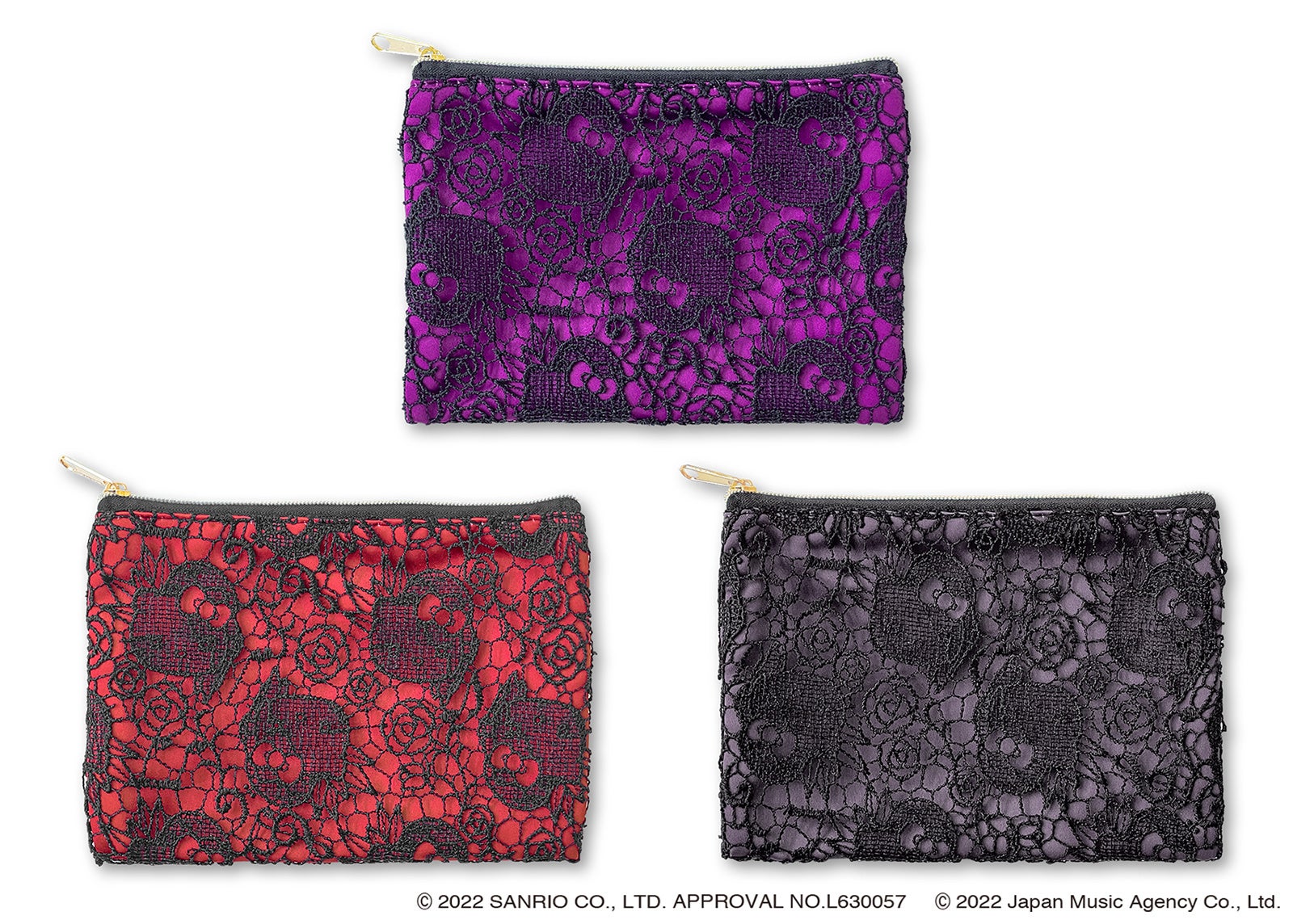▼ファスナーポーチ(3カラー:パープル、レッド、グレー) 各2,600円(税込)