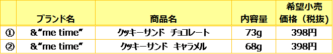 三菱食品株式会社(東京都文京区)は、スイーツブランド『&“me time”(アンドミータイム) フローズンデザート』新商品2品を11月22日(火)よりスーパーマーケットやドラッグストアをはじめとした全国に発売します。新商品は東京・恵比寿に本店を構えるスペシャルティコーヒー専門店『猿田彦珈琲』焙煎の珈琲豆を粉砕加工し【豆のまま】使用。珈琲の味わい豊かなおとな風味のクッキーサンドです。