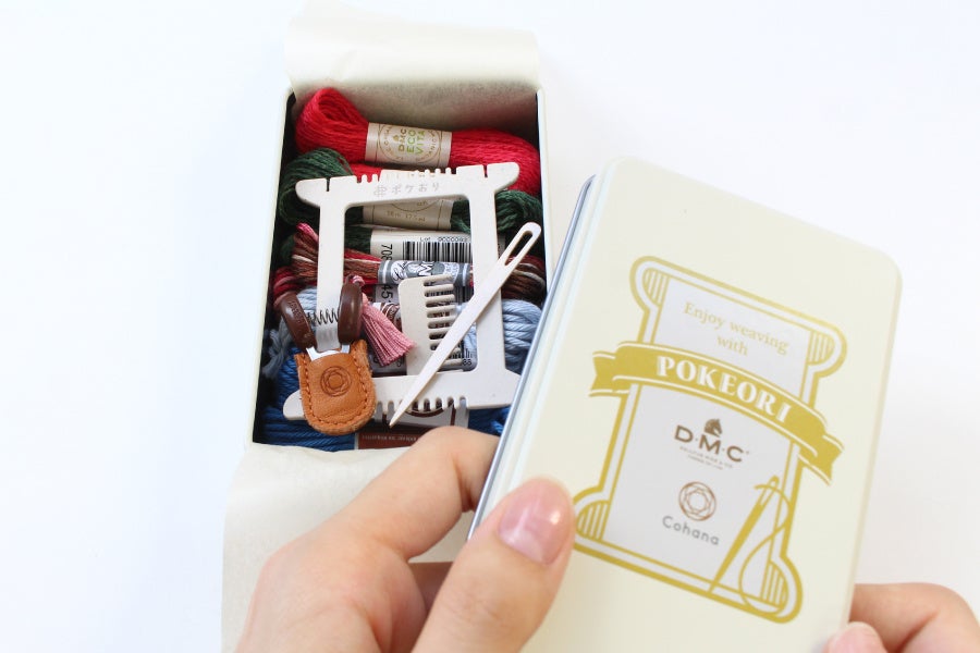 この度、刺しゅう糸の老舗「DMC」の美しい糸と、「Cohana」の道具が出会って生まれた、特別なポケおり缶を発売いたします。ミルクホワイトの限定缶に、心ときめく特別な道具たちをぎゅっと詰め込みました。
