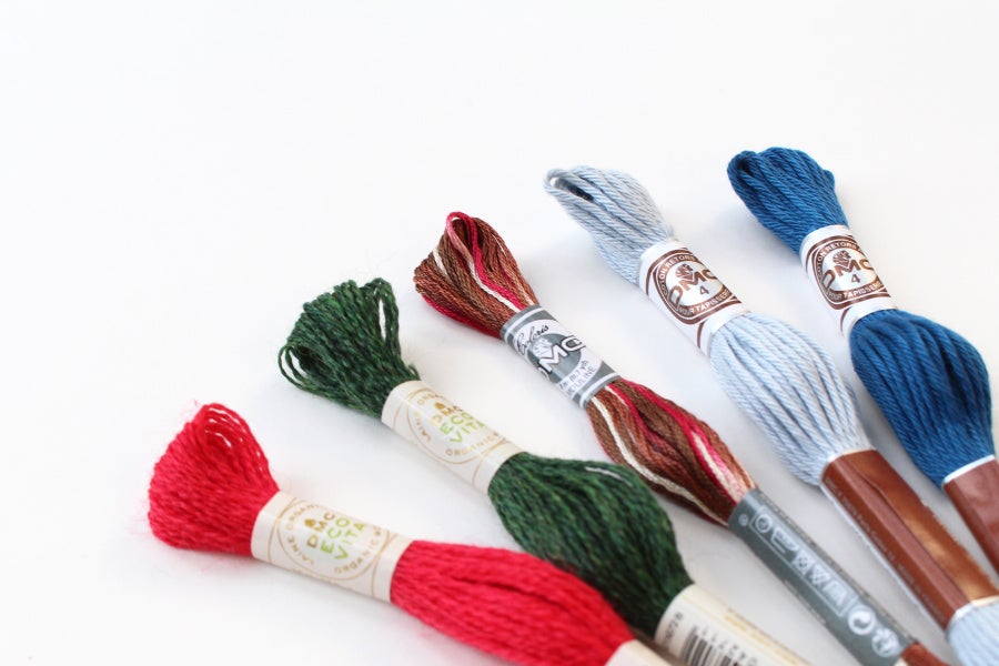 DMCの豊富な糸の中から、表情が異なる3種類5色をセレクトしました。