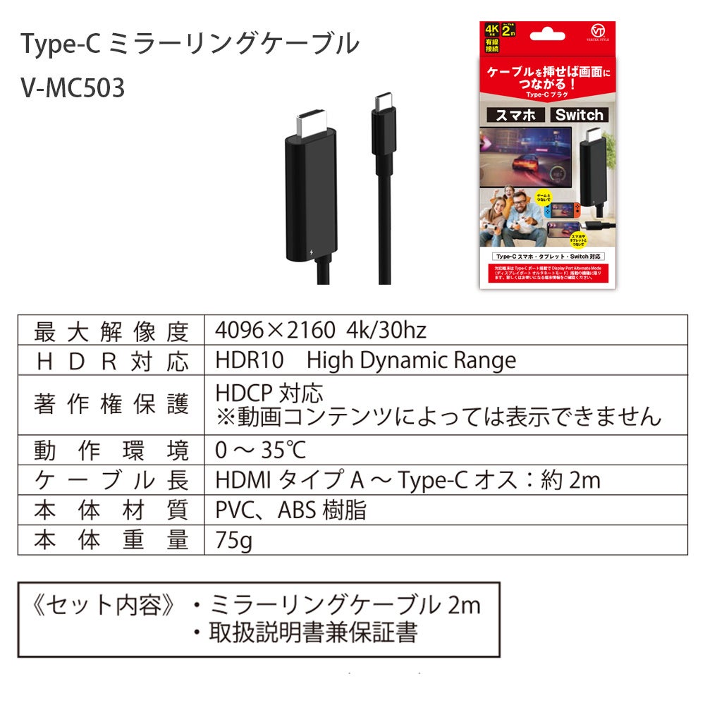 有線接続で設定不要!ゲームやスマホ・タブレットの映像を大きな画面に映せるType-Cミラーリングケーブル『V-MCS03』がVERTEX STYLEから発売!