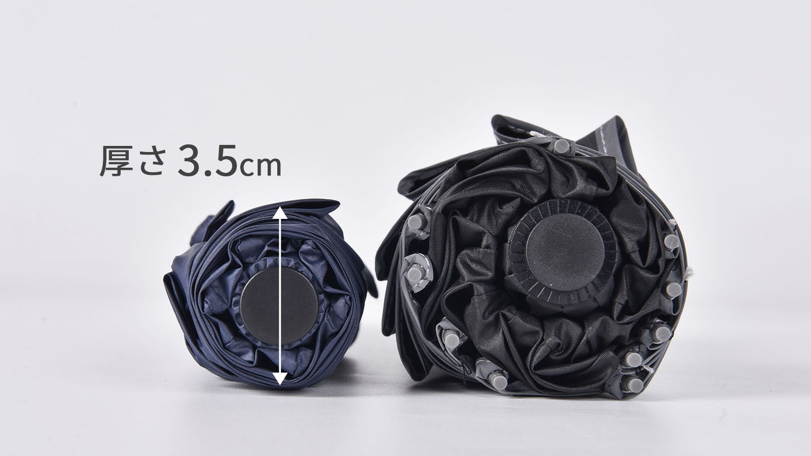 また、ワンタッチ自動開閉傘では珍しい3.5cmという極薄設計を実現し、持ち運びに便利です。カバンやリュックに簡単に収納でき、外出時に手軽に持ち運べます。
