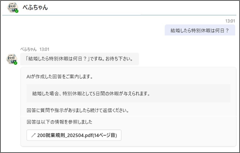 まずは社員から日々寄せられる社内規定や経理ルールに関する問合せ対応を「べふちゃん」が担い、人的リソースの最適化とナレッジの一元化を目指します。