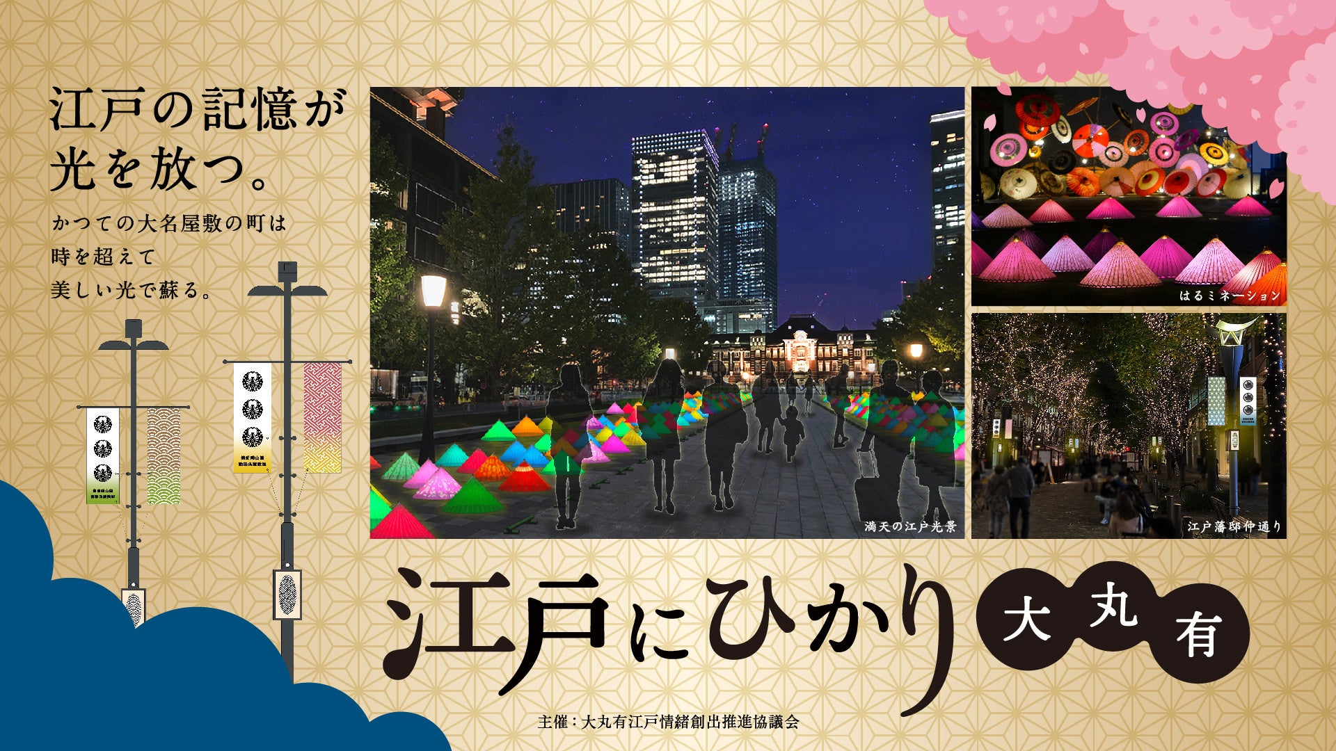 かつて大名屋敷があった大手町・丸の内・有楽町エリアを中心に、江戸の記憶と歴史に「ひかり」を当て、伝統的な江戸からの情緒あふれる景観を現代にアップデートしたイベント 「江戸にひかり大丸有」が2025年1月9日(木)~3月7日(金)の期間に開催します。