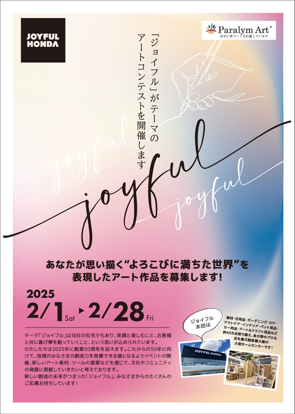 障がいのある方が参加できる「ジョイフル」をテーマに描くアートコンテストを開催。作品募集期間:2025年2月1日(土)~2月28日(金)