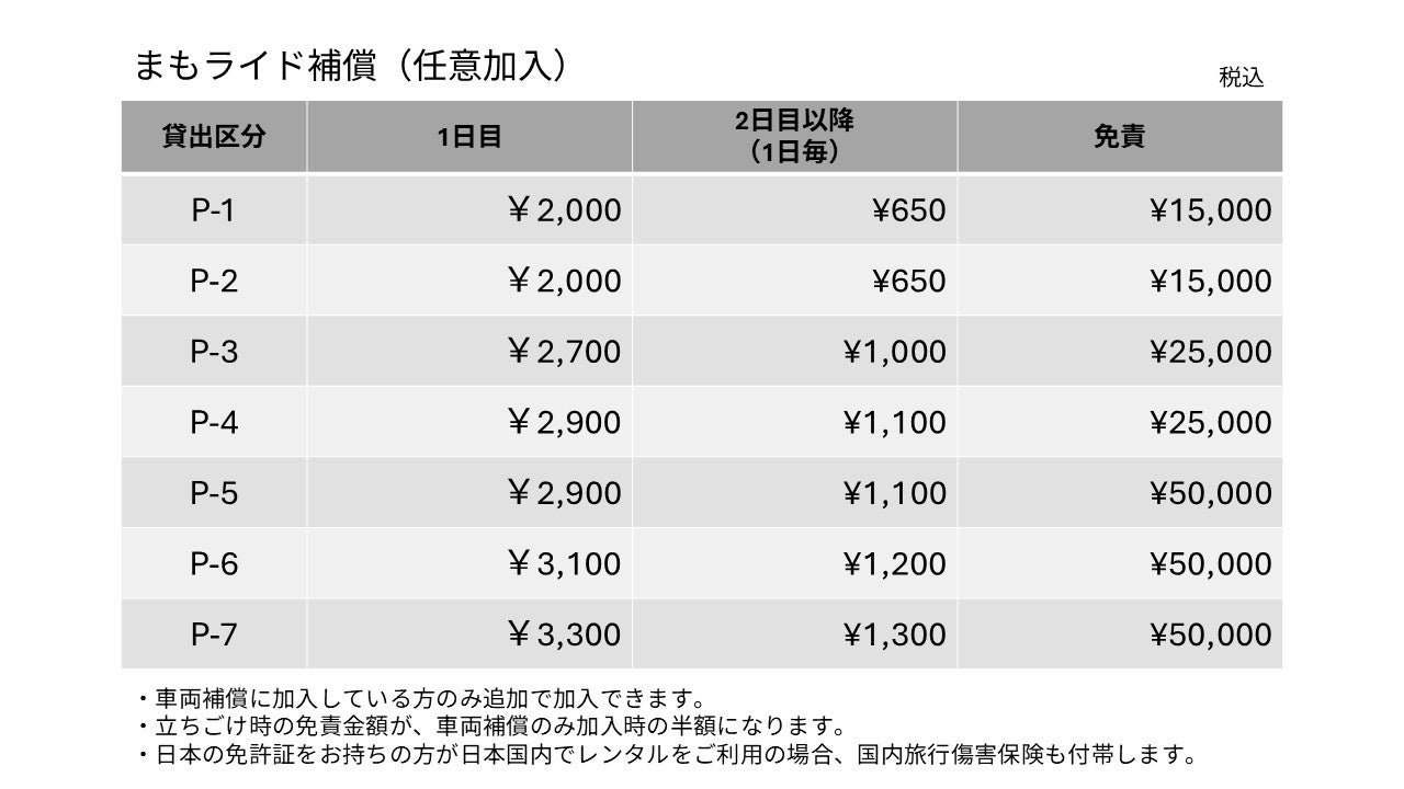 「まもライド補償」は任意加入のオプションサービスです。料金は車両クラスに応じて異なります。