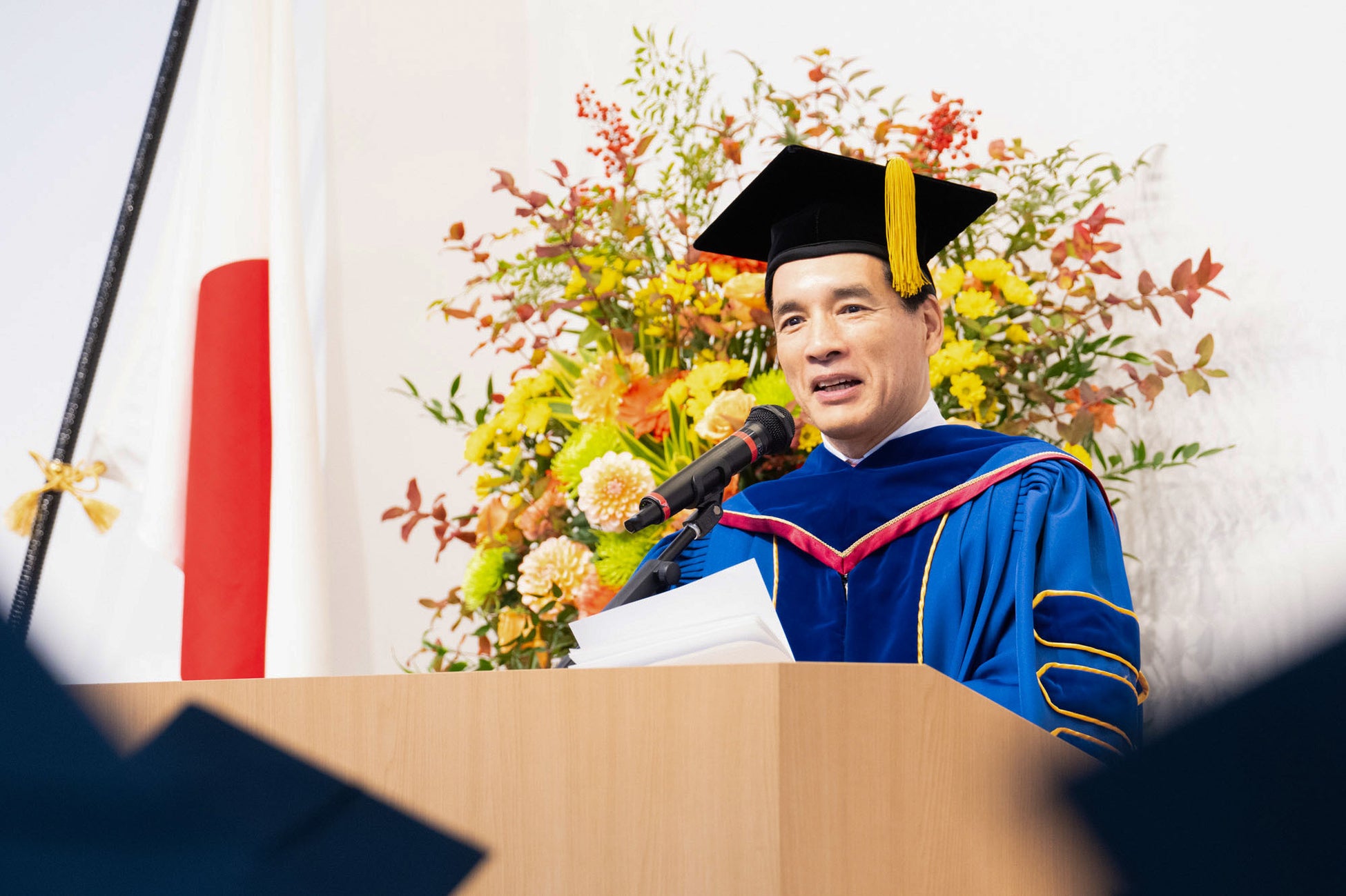 学長の堀義人は、式辞で卒業生に向けて激励の言葉を贈りました。