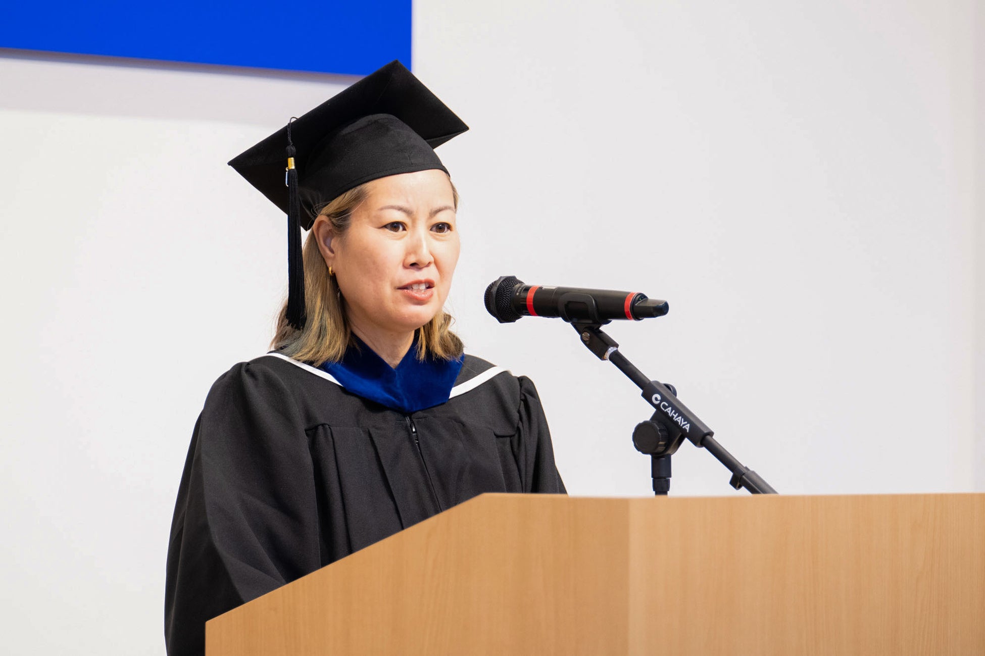 「かつて危機に直面したとき、私は自分の未来に投資することを選び、グロービスに入学しました。きっと、ここにいらっしゃる皆さんも同じ気持ちでこの場にたどり着いたのだと思います。今日から私たちはグロービス経営大学院の卒業生として、そしてより良い社会を築くための革新的で先見的なリーダーとして、新たな一歩を踏み出します」