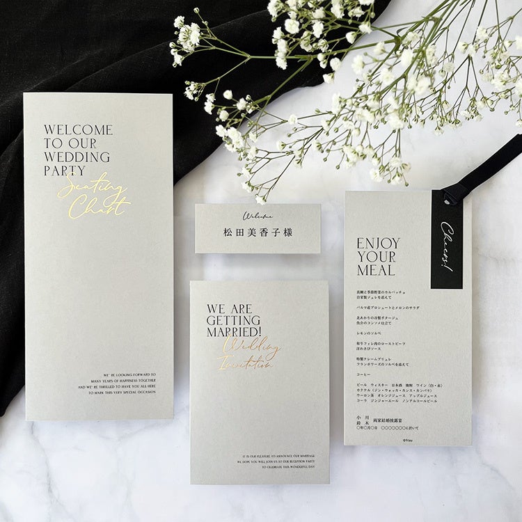 価 格:招待状 339円/席次表 508円/メニュー 157円/席札 103円 ※全て税込価格