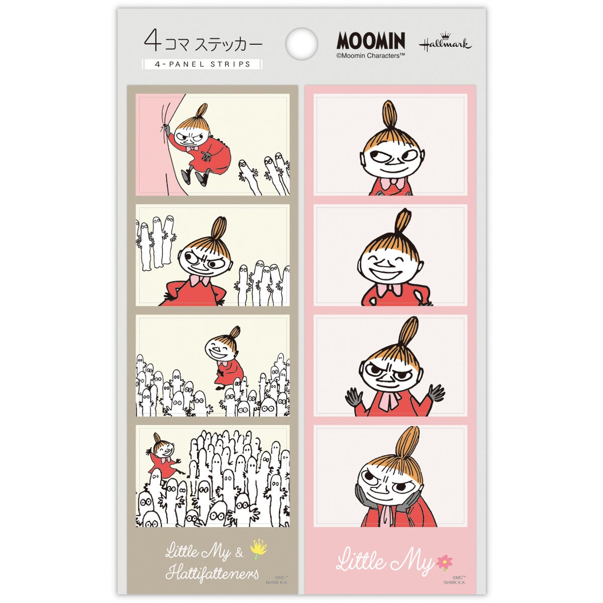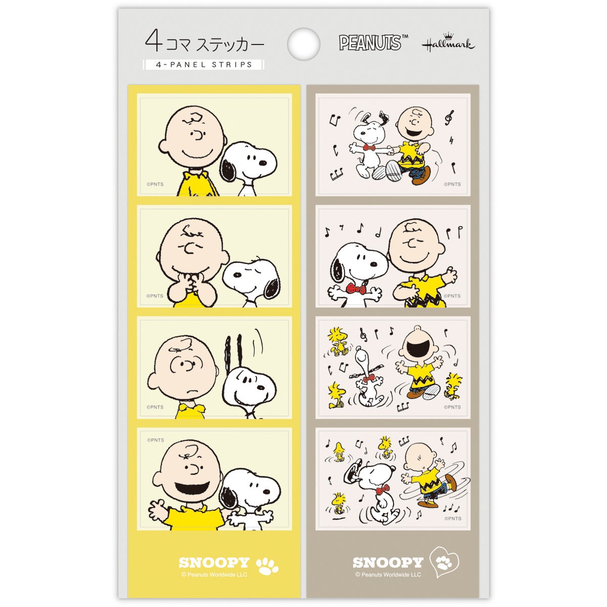 コマごとに変化するキャラクターの表情やポーズが楽しめる、4コマ漫画風のステッカー。1コマずつ貼っても、全部まとめて貼っても可愛さ満点◎