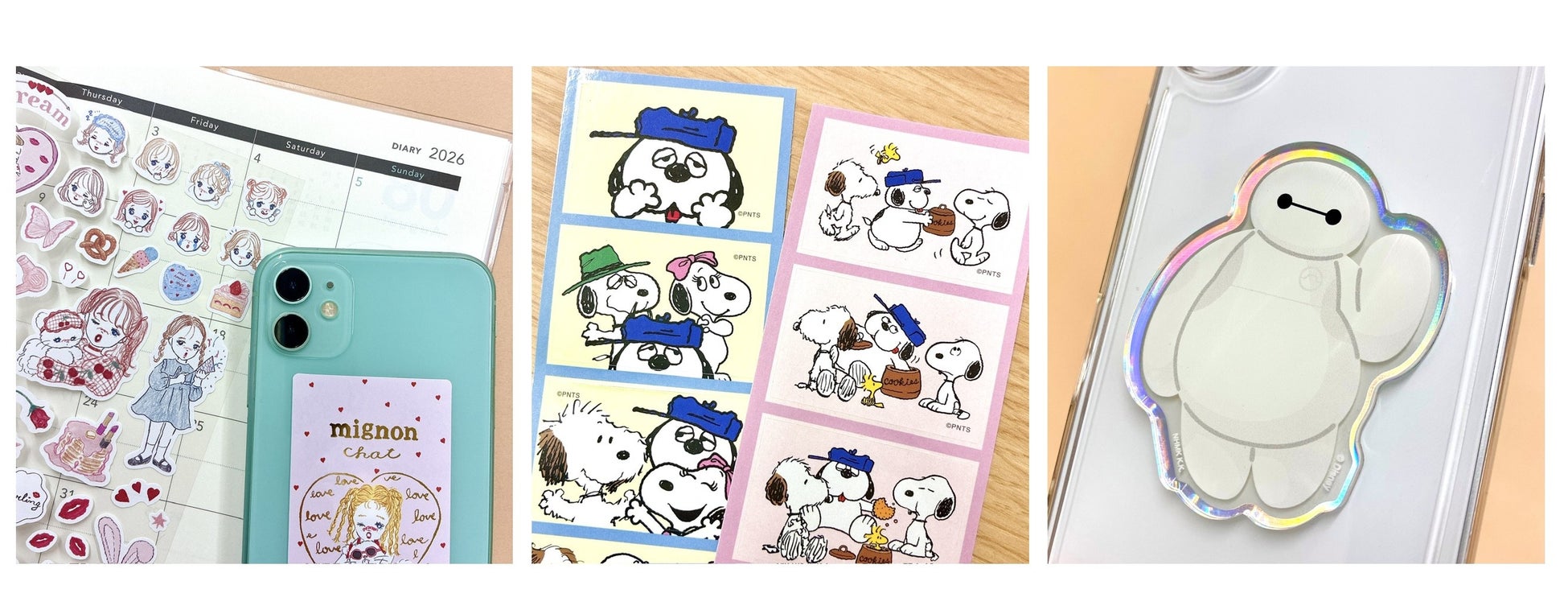 韓国発の人気プリントシールからインスピレーションを得た、ストーリー性のあるステッカー。1枚のシールに4コマ構成でキャラクターが登場し、コマごとに表情やポーズが変化するのがポイント! コレクション性とシェア性を兼ね備え、視覚的にも楽しめるシリーズです。