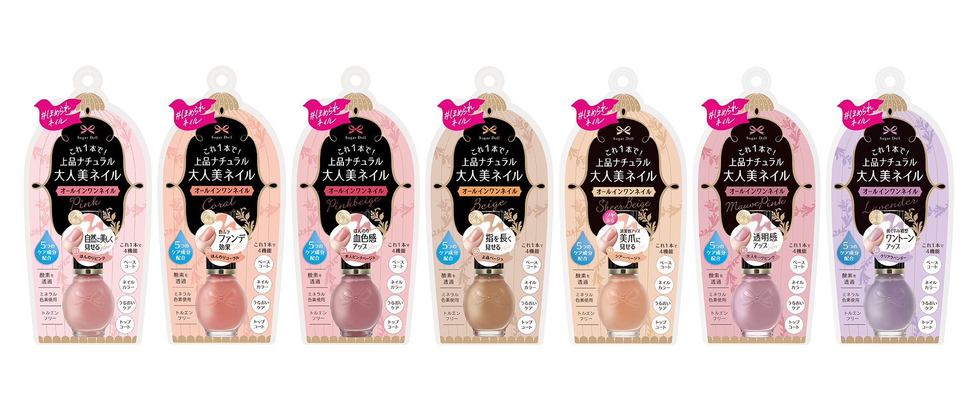 これ1本で4機能!上品ナチュラルなツメ美人に!1本で4つの機能(ベースコート、ネイルカラー、うるおいケア、トップコート)を備えたオールインワンネイル。