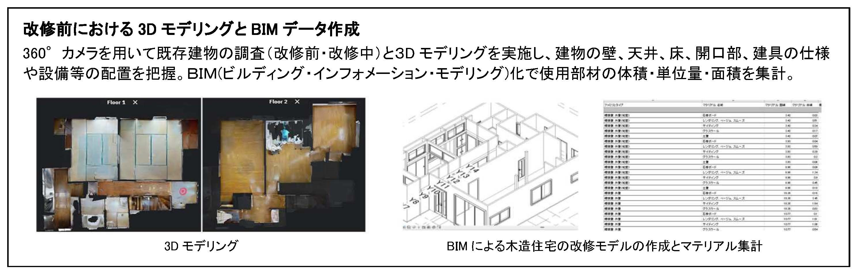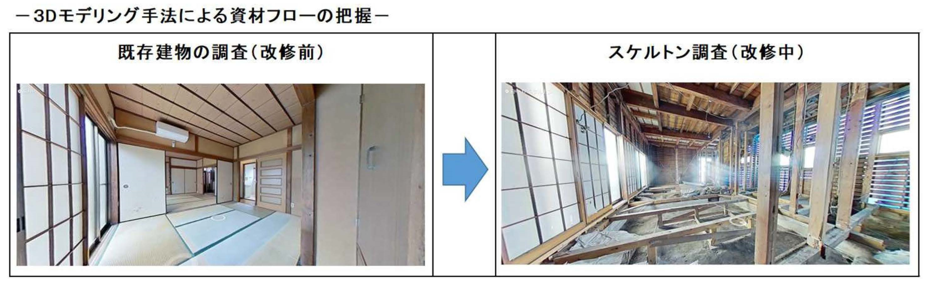 本研究では、住友不動産株式会社が蓄積した年間約8千棟のリフォーム物件データを活用しながら、改修現場における3Dモデリングなどデジタル技術を活用した調査を武蔵野大学・東京大学大学院と共同で行い、改修による資源循環性及びCO2排出量の削減効果といった建物改修における「環境評価手法」を新たに構築することを目指し、都内の改修現場(3棟)で調査を進めています。研究結果を一般的な枠組みとして提供することで、5,000万戸を超える既存住宅を含めた脱炭素社会の推進と、社会資産である既存住宅の機能向上による流通活性化を目指し、持続可能で豊かな社会の実現に貢献していきます。
