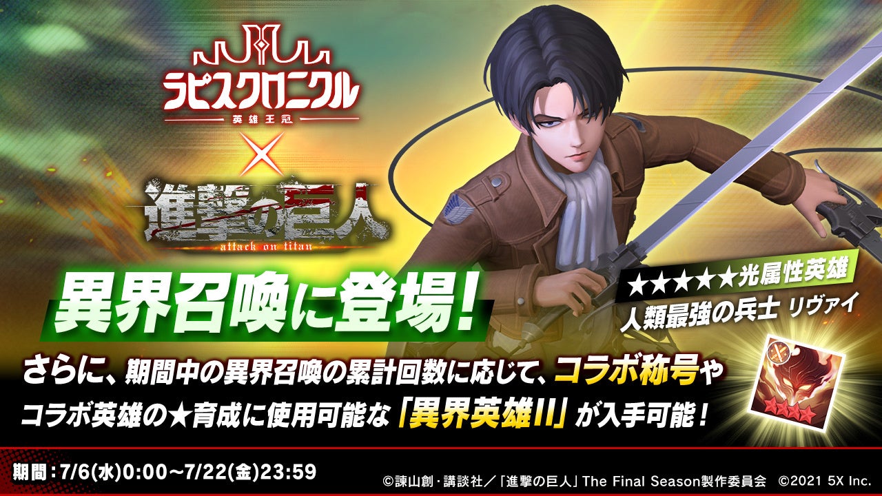 『ラピスクロニクル -英雄王冠-』✖️『進撃の巨人』コラボ開催中!新たな英雄【人類最強の兵士】リヴァイが参戦!