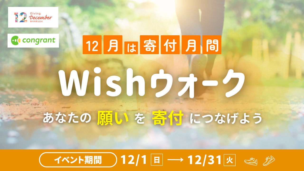 NPO・ソーシャルセクター向け寄付決済システムを提供するコングラント株式会社(本社:大阪市西区、代表取締役:佐藤正隆)は、2024年の寄付月間賛同企画として、「寄付は願い」というコンセプトでチャリティウォークアプリ「minpo」を用いた「Wishウォーク」を12月1日(日)〜12月31日(火)に開催します。本イベントは11月21日(木)より申し込みを受け付けています。