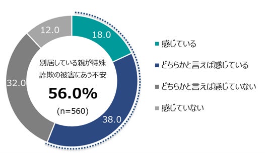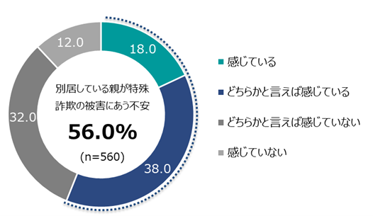別居している親が特殊詐欺にあう不安を感じる人は56%、