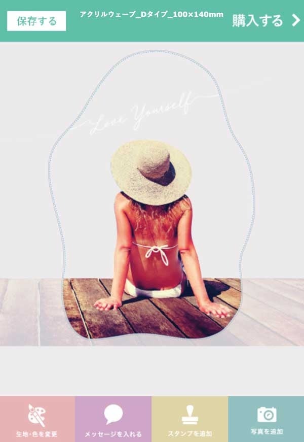下記URLをクリックすると、オリジナルのアクリルウェーブ(100×140mm・Dタイプ)作りが体験できます。デザイン作成は無料です。もしお気に入りのデザインができればもちろん購入可能!