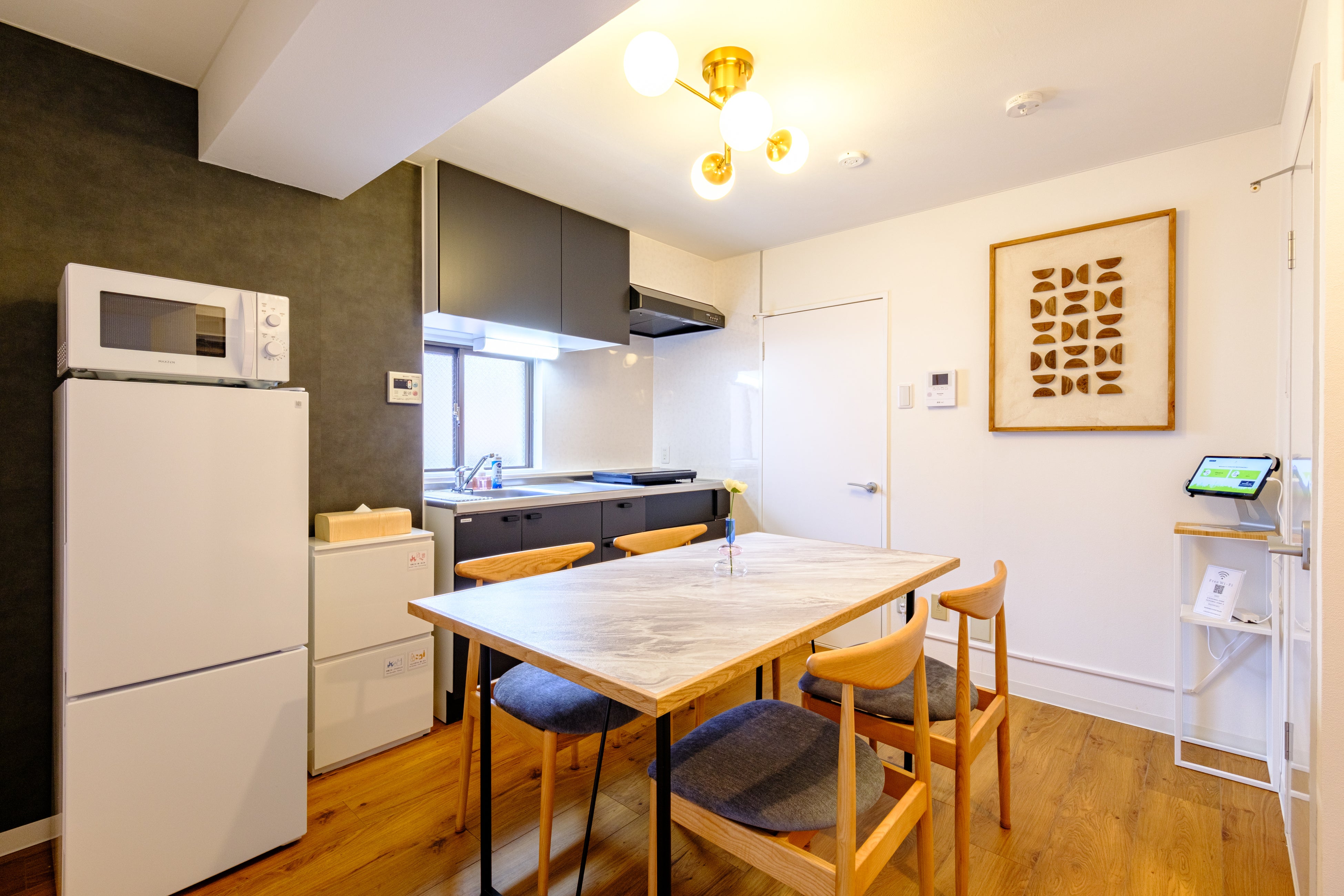 室内にはキッチン・洗濯乾燥機・Wi-Fi、アメニティ類など生活に必要な設備を完備しており、長期滞在でも快適にお過ごしいただけます。