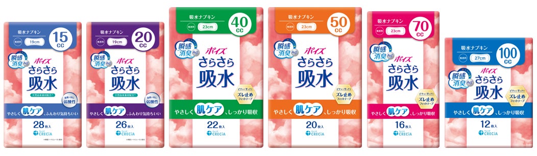 ■『ポイズ さらさら素肌 パンティライナー』/『ポイズ さらさら吸水 吸水ナプキン』ラインアップ