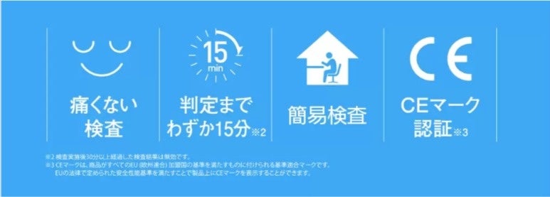検査時間は15〜20分程度で簡単です。(検査実施後30分以上経過した検査結果は無効です)