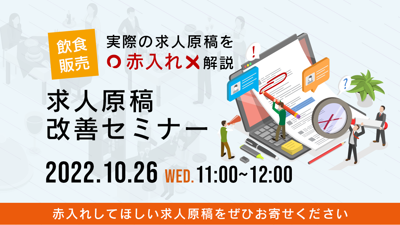 特にご要望の多い飲食や販売などのサービス職採用向けに求人原稿の見直しについて徹底解説いたします。