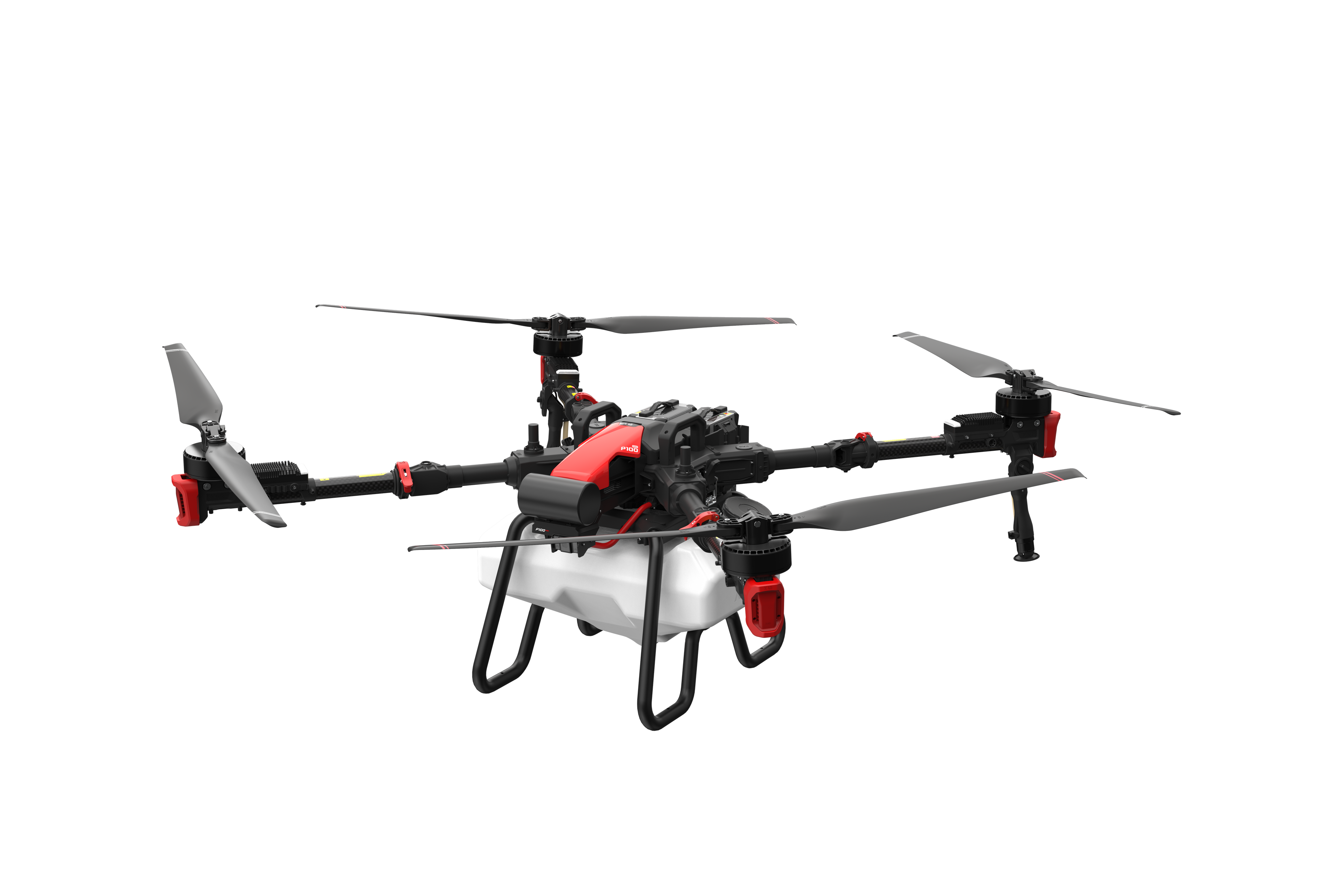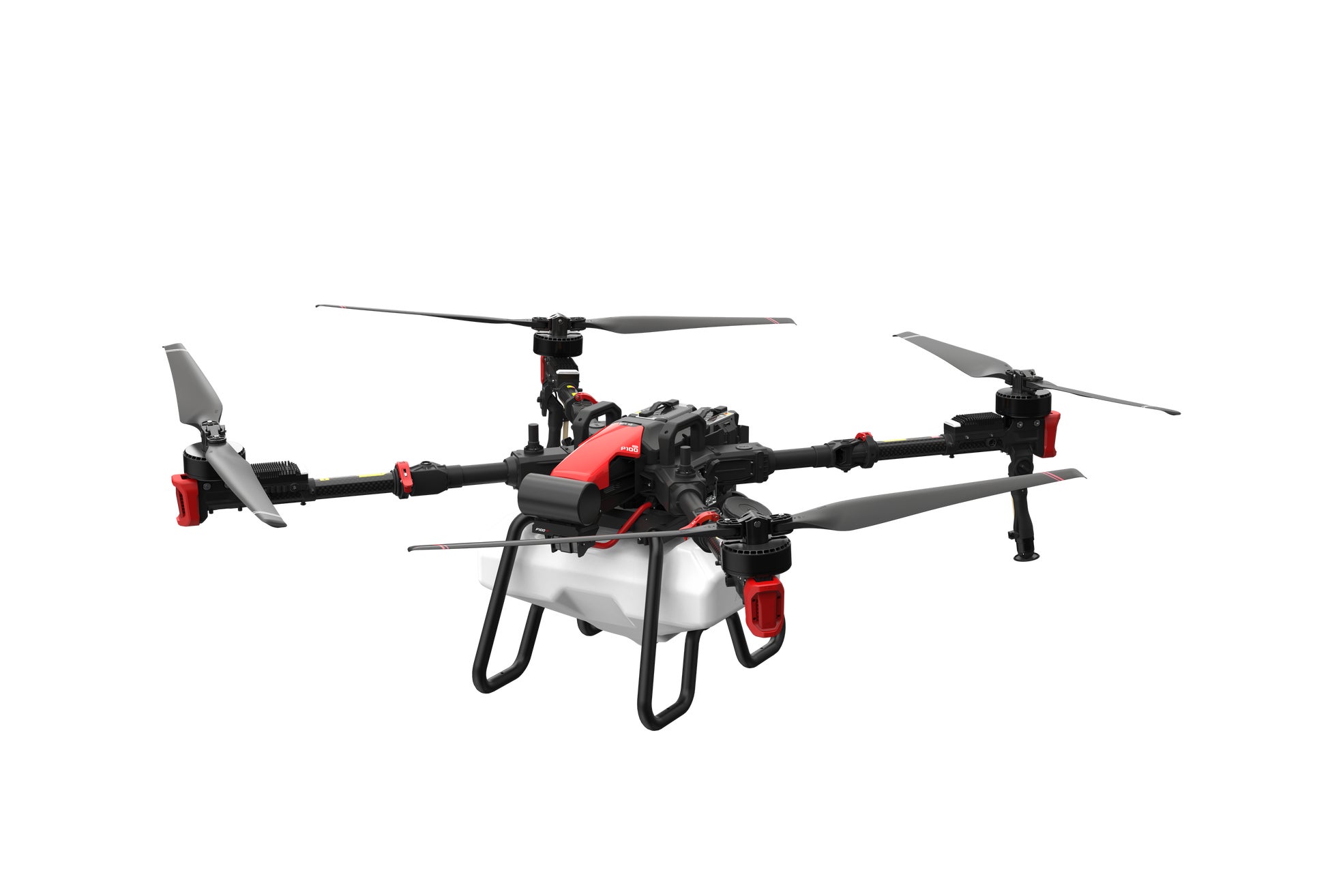 「P100 Pro」は、液剤50L、粒剤50kgの最大積載量を誇る二種類の大容量散布装置を備え、専用アプリケーションで設定した作業エリア、散布量、飛行ルートなどに基づき、完全自動航行を実現します。また、二種類の散布装置は、ワンタッチで切り替え可能で、液剤は最大22L/min、粒剤は最大150kg/minの吐出能力を誇り、1台で様々な作物に対する散布作業を可能にします。さらに、ワンタッチで折りたたみ可能な機体は、展開時と比べ約62%小さくできるため運搬や保管にも便利です。