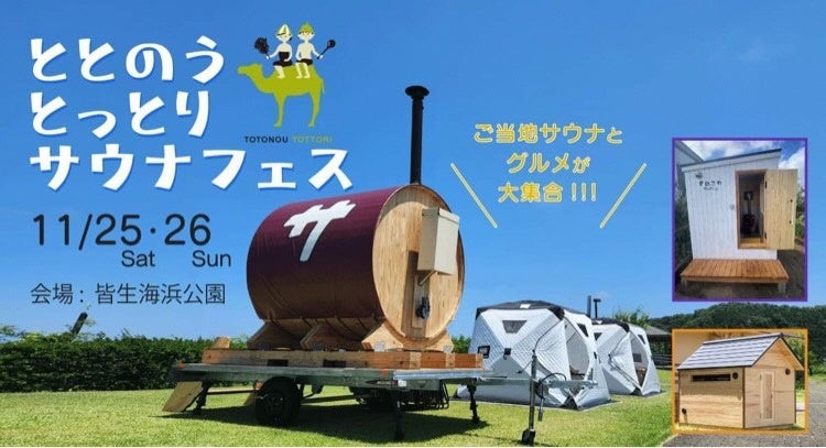 また、同時開催される「ととのうとっとり」サウナフェスでは、バレルサウナ、CLTサウナ、小屋サウナといった鳥取県内企業オリジナルサウナが体験ができる「サウナエリア」、サウナ発祥の地であるフィンランドのブースをはじめ、ワークショップやクイズラリー、見学体験用のテントサウナなどが楽しめる「体験エリア」、食パラダイス鳥取県のご当地メニューが味わえる「とっとりサ飯エリア」の3つのコンテンツを用意。サウナと鳥取県の魅力をたっぷりとお届けします。