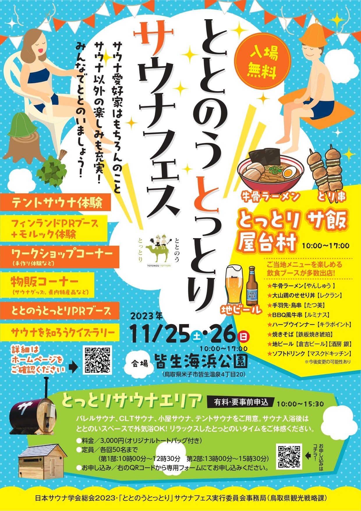 鳥取県・皆生温泉がサウナ一色に! 『日本サウナ学会総会2023』&『「ととのう とっとり」サウナフェス』を11月25日(土)、26日(日)に開催