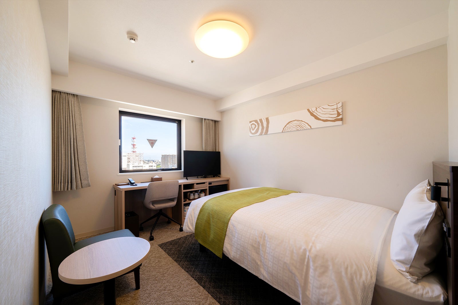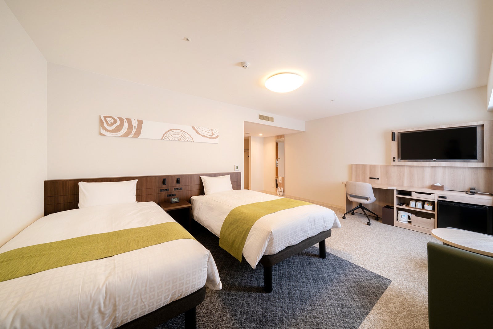 機能性と快適性を兼ね備えた客室は、木の温もりを感じる落ち着いた空間設計が特徴。全室にサータのポケットコイルマットレスを導入し、上質な睡眠環境をご提供いたします。お部屋は、ダブル、ツイン、トリプルルームまで多彩な客室タイプをご用意し、お一人様からご家族まで幅広いニーズに対応いたします。全客室には、ウルトラファインバブルのシャワーヘッドや、加湿機能付空気清浄機、大型テレビ、充電用コンセントなど、設備も充実。窓の外に広がる富山の街並みを眺めながら、心安らぐひとときをお過ごしください。また、歯ブラシやヘアブラシ、カミソリはバイオマス商品を採用しており、環境に配慮した取り組みも行っております。
