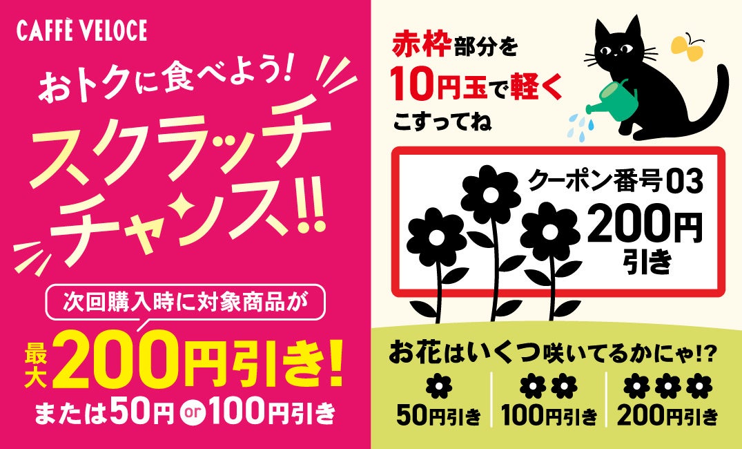 『カフェ・ベローチェ』の春は、お得がとまらない!朝も昼も夜も最大200円OFFの割引スクラッチカードキャンペーンを3月14日より開催