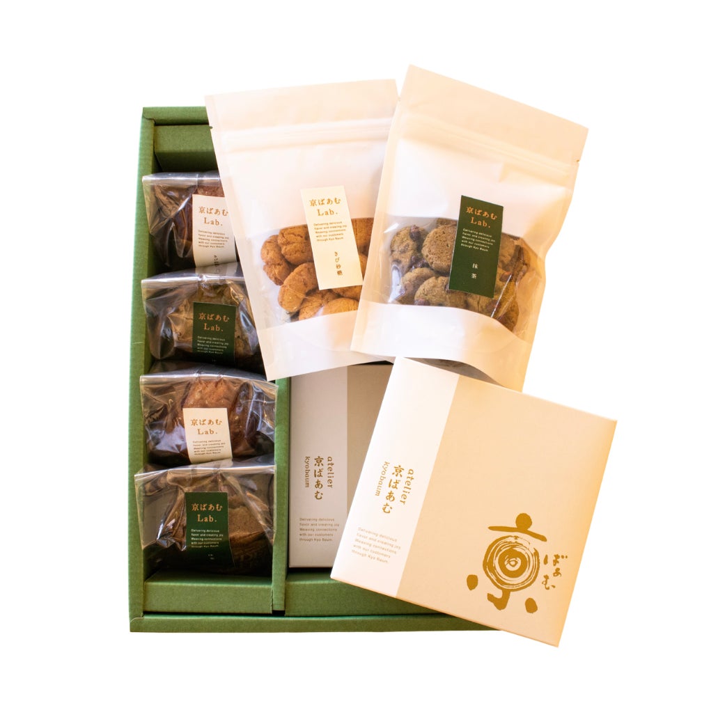 この度新たに登場するのは、ギフトの詰め合わせにもおすすめの焼き菓子です。新年のご挨拶や大切な方への贈りものとして、atelier京ばあむのギフトはバームクーヘンをはじめとしたお菓子を自由にカスタマイズすることができます。