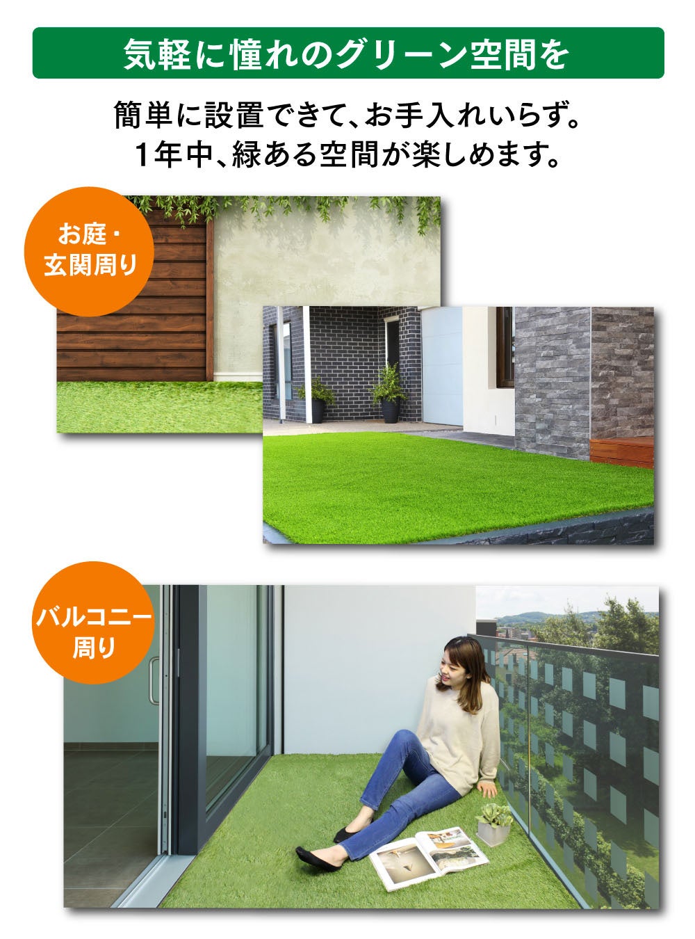 ハサミを入れたらサクッサクッと入れられて、取り扱いが簡単。庭やベランダの形状に合わせて、あなた好みの芝が手に入ります。女性やお年寄りの方にも簡単に取り付けられるよう設計しました。