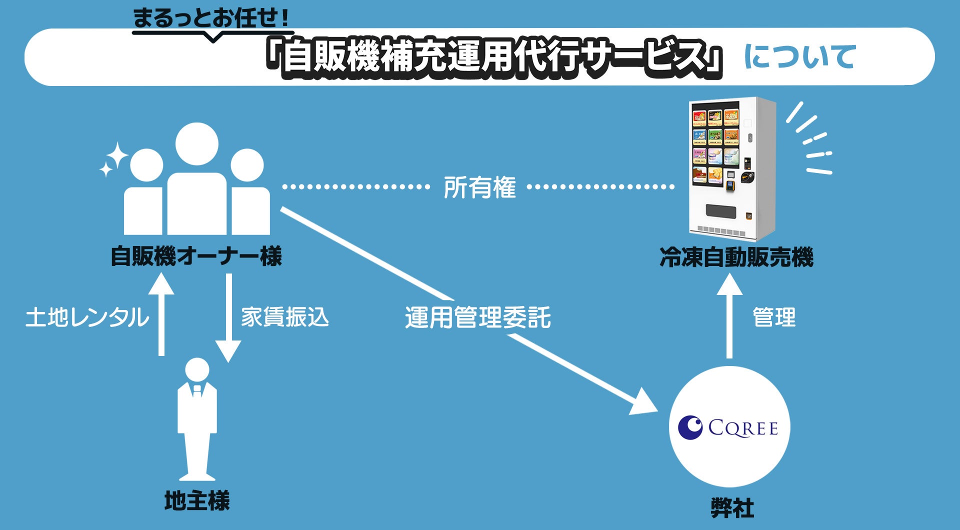 本サービスでは、冷凍自販機『ど冷えもん』の更なる拡大を目指し、設置場所の紹介や、在庫補充/管理から金銭管理まで代行するサービスの提供を開始いたします。
