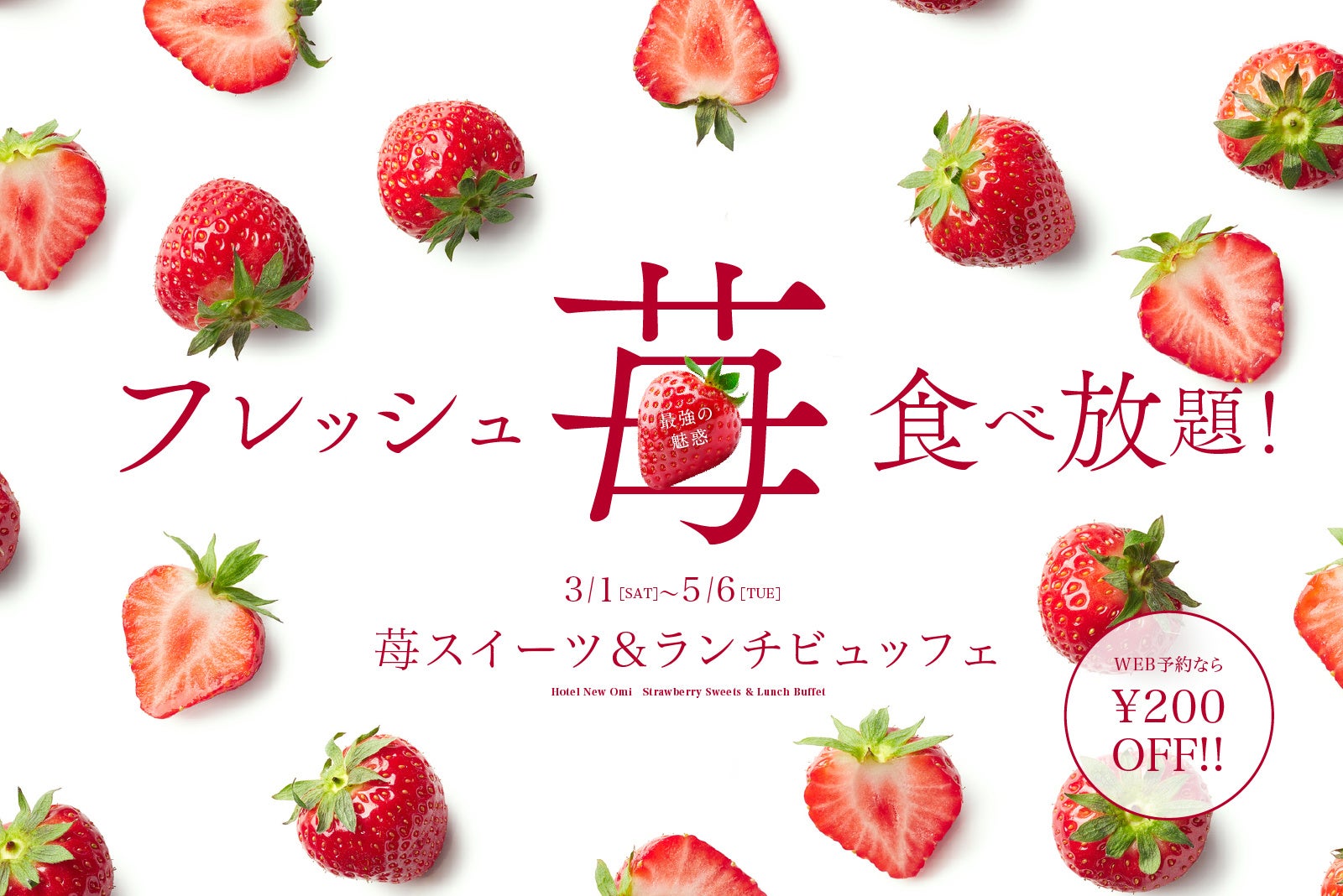 最強の魅惑 フレッシュ苺が食べ放題!3/1〜5/6「苺スイーツ&ランチビュッフェ」大人気・好評予約受付中!JR近江八幡駅から徒歩2分【ホテルニューオウミ】