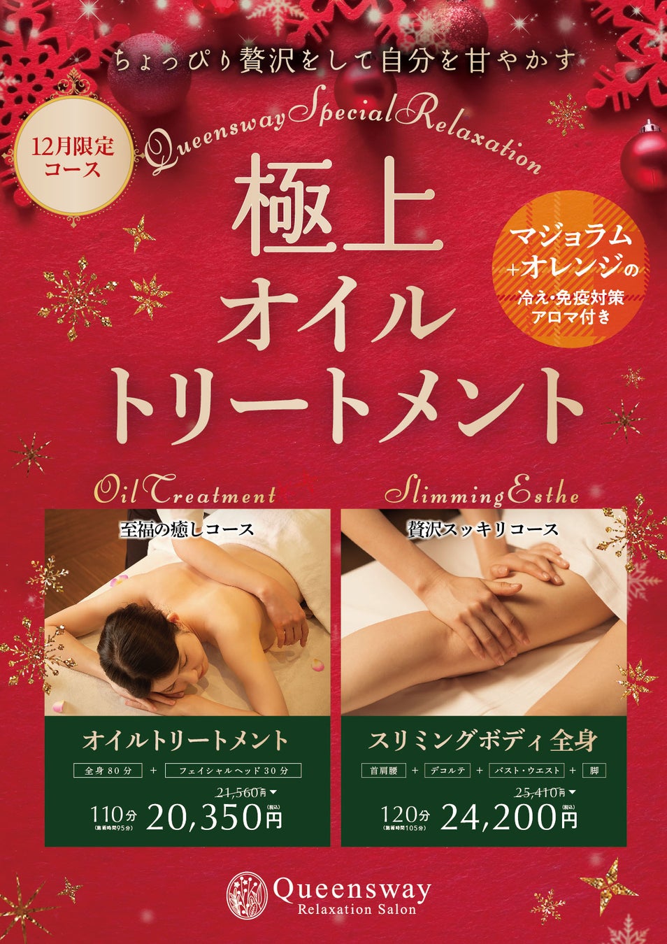 このたび、Queenswayが2024年12月限定で3つのコースから選べるお得な施術をご提供いたします。