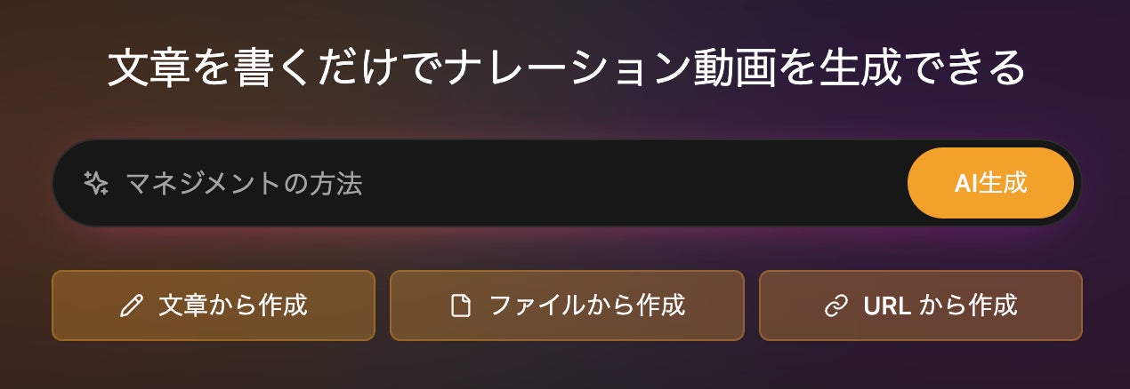 文章を入力するだけで、プロフェッショナルな動画が短時間で完成するため、社内研修や教育マニュアル、SFAと連携した取引先への動画制作など、企業が抱えるさまざまな動画制作の課題を効果的に解決します。