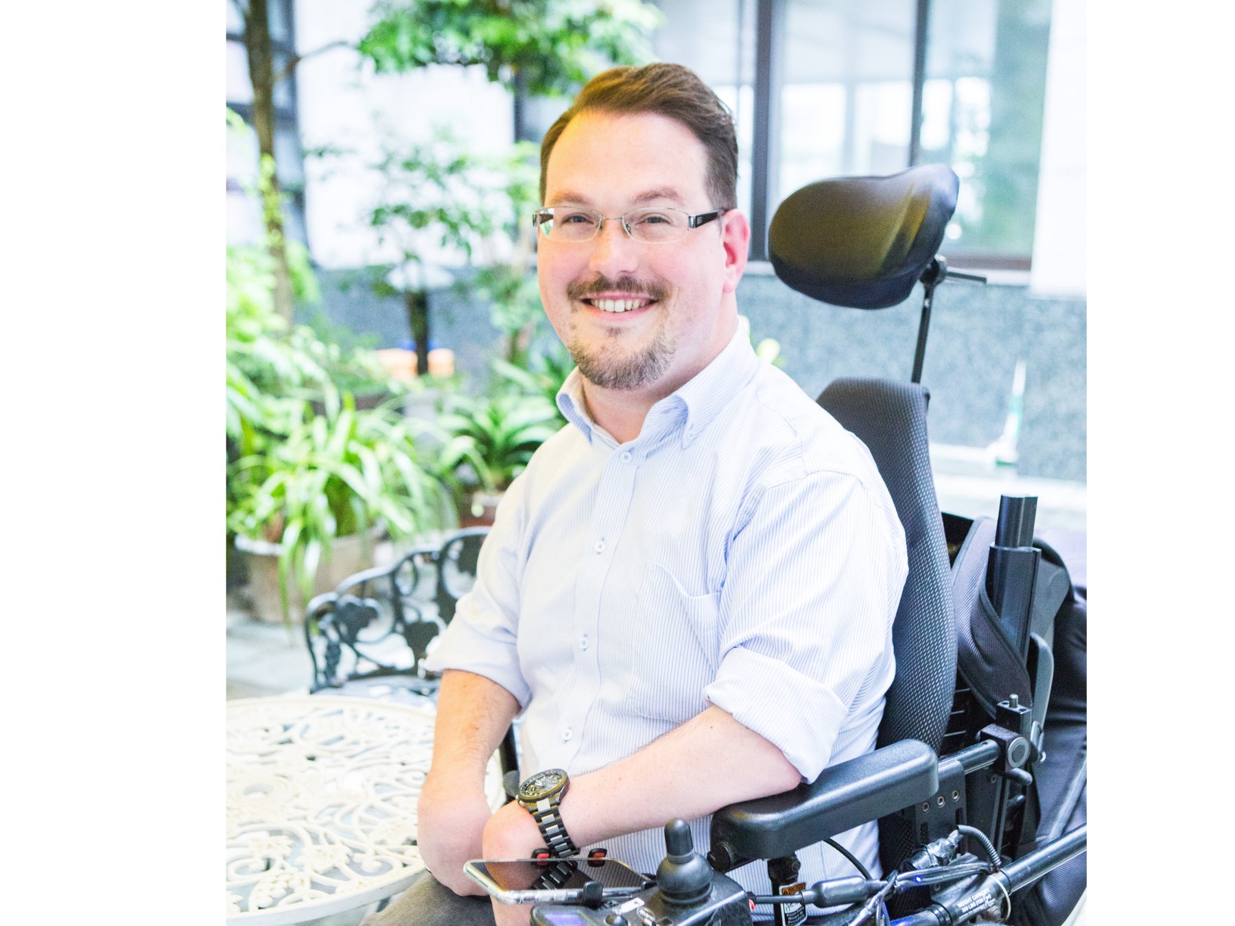 1981年生まれ、カナダ出身。幼少期に四肢まひ性・脳性小児まひを患い4歳より車いす生活に。2007年に来日。仕事では、介護施設、老人ホーム、幼稚園、保育園などの日本語ウェブサイト制作業務に携わる。プライベートな時間を利用し、障害のある外国人のための日本観光サイト「アクセシブル・ジャパン」の運営を手掛ける。2016年に日本国籍を取得。