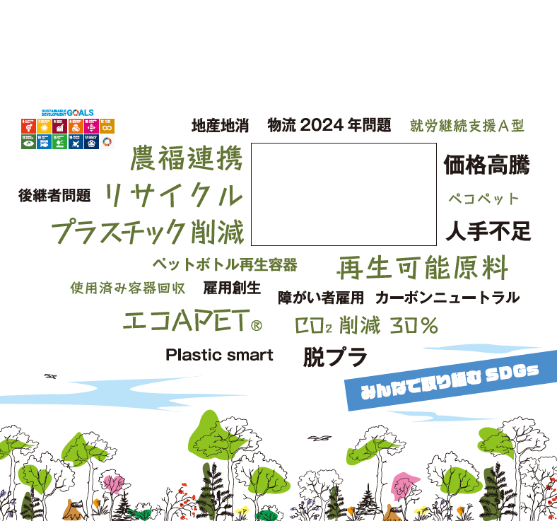 取り巻く課題と、容器包装メーカーとしてエフピコグループがご提案できる解決策を表現しています。