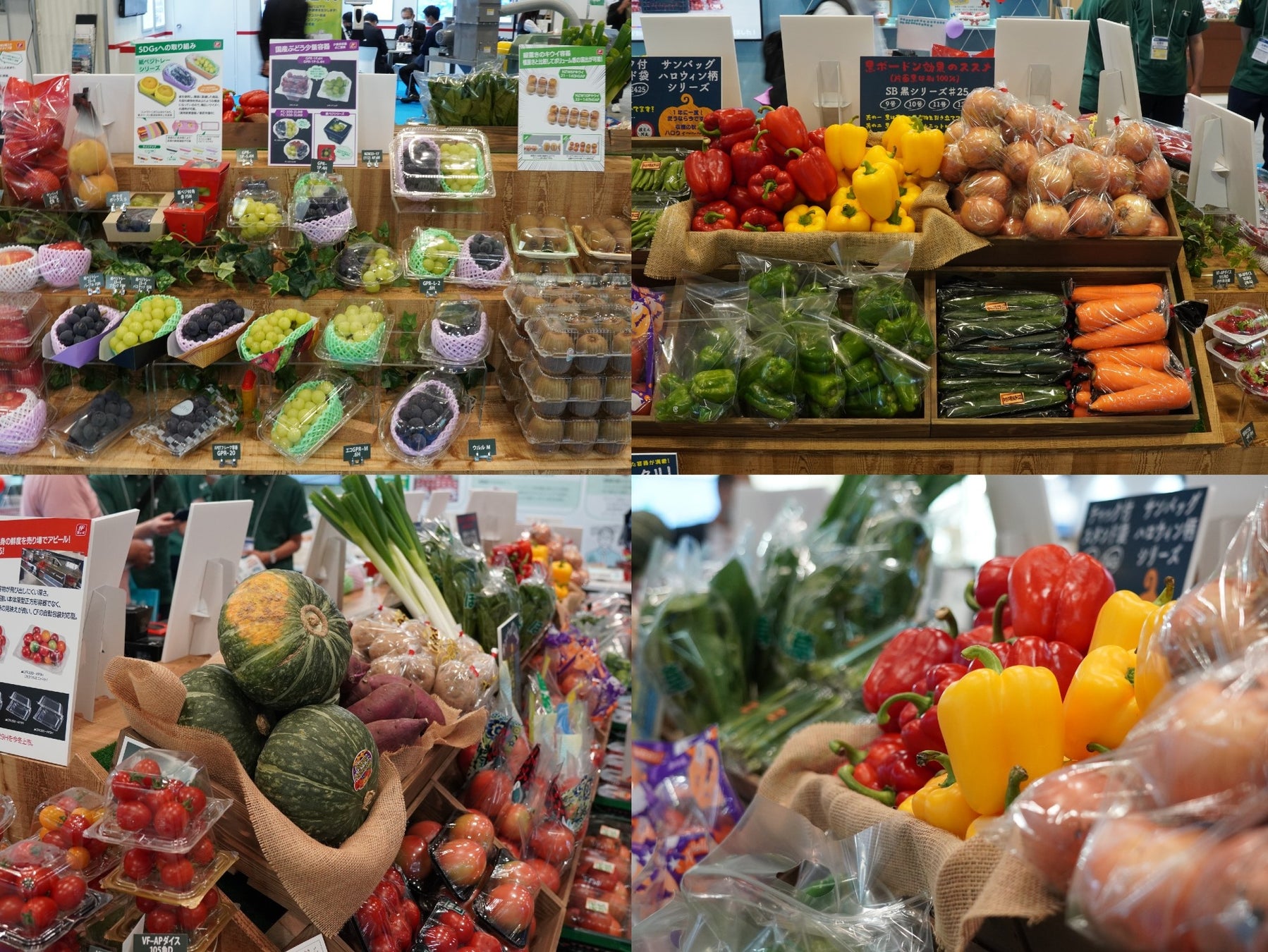 省人化を実現できる自動包装対応の容器や2024年問題への対策として輸送効率が高い容器、SDGs実現に向けた容器のご提案など、産地で発生する課題に絡めた展示を行っています。