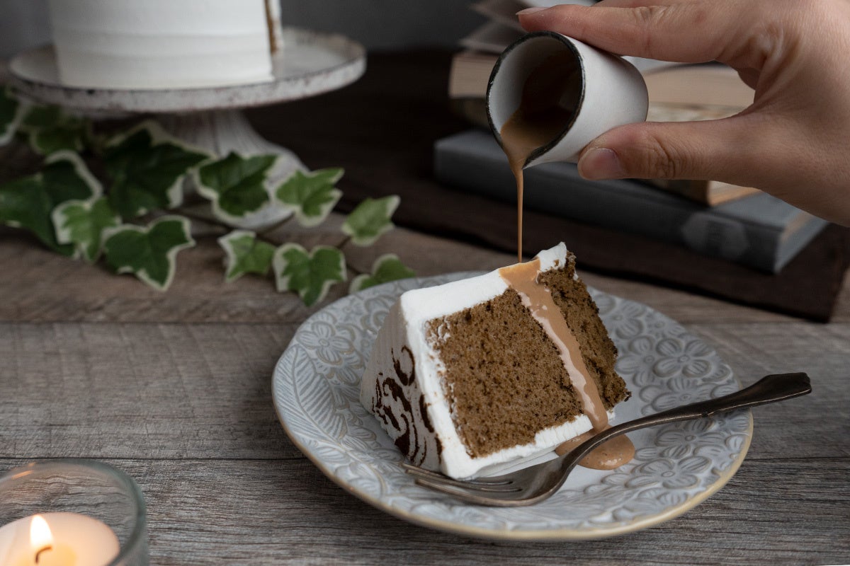 アールグレイ香る生地にコクのあるクリーミーなクリームが包み込んだ紅茶シフォンケーキをそのままでも、付属のミルクティーソースをかけてさらに濃厚な紅茶の味わいも、両方お楽しみいただけます。