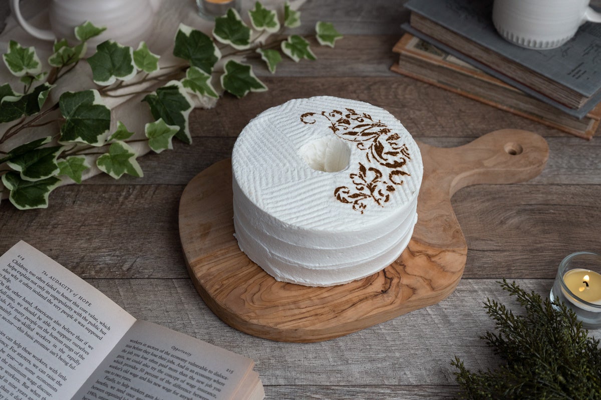 大切な人と過ごす時間、自分へのご褒美時間、そんな幸せなひとときがずっと続きますように願いを込めて、天面には「永遠の愛」が花言葉の蔦をイメージしたデザインを紅茶パウダーで飾りました。