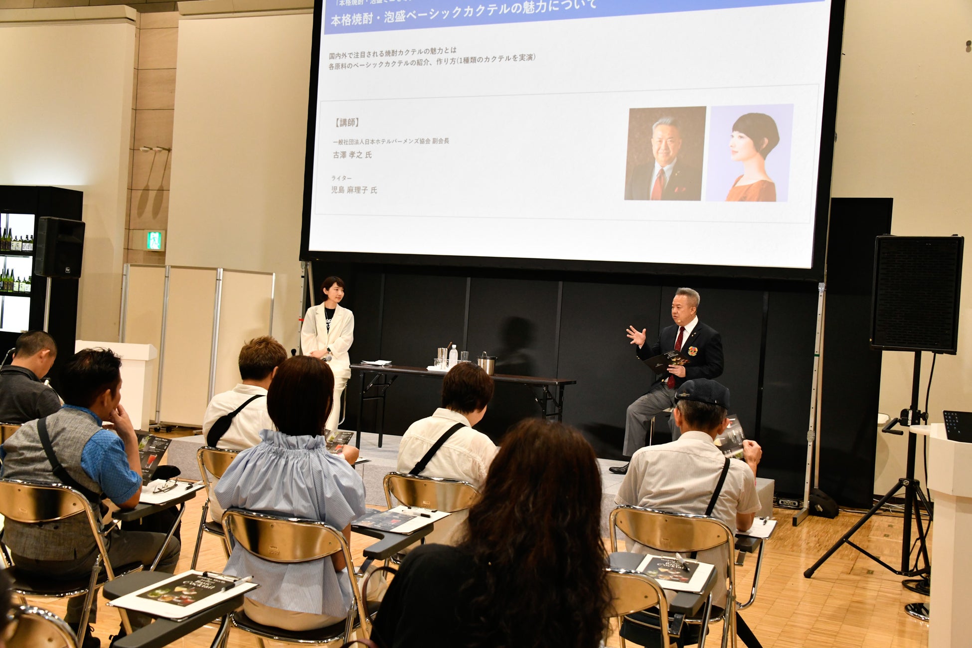 同会場内では、本格焼酎・泡盛に関するミニセミナーも展開。世界の蒸留酒と日本の焼酎の違いと魅力について語る内容や、琉球泡盛や今回会場にて提供されたベーシックカクテルの魅力など、様々な題材でのトークセッションが行われました。セミナーへの参加者からは「地域による材料の違いに目が行くだけで楽しみ方に奥行きが出る」「焼酎はロックやお湯割りなどで飲むものだと思っていたが、こんなにお洒落な飲み方をしてもいいのかと価値観が変わった。」といった声もきかれました。