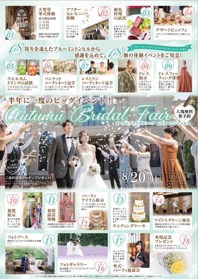 旭川市の結婚式場・ブルーミントンヒル(株式会社あいプラン/代表取締役・新道喜信)では半年に一度の、最大級のブライダルフェアを8月20日(日)に開催します。