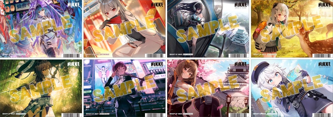 また、ご購入キャンペーンとして、「NIKKE」関連のキャラクターグッズをご購入・ご予約内金1,100円(税込)毎にブロマイド(全8種)を1枚プレゼントします!