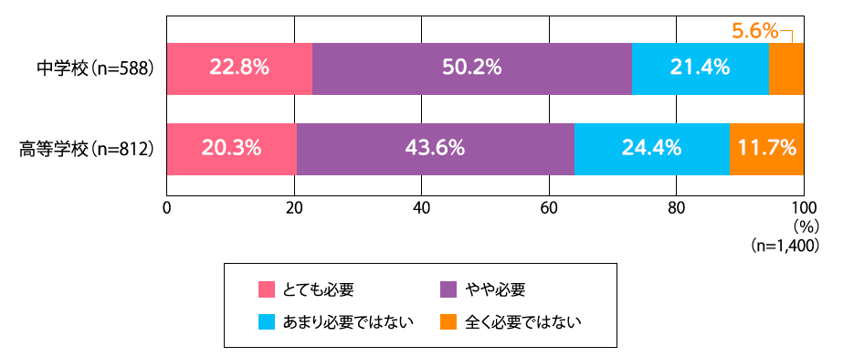 しかし、高校では「全く必要ではない」(11.7%)という回答も約1割みられました。
