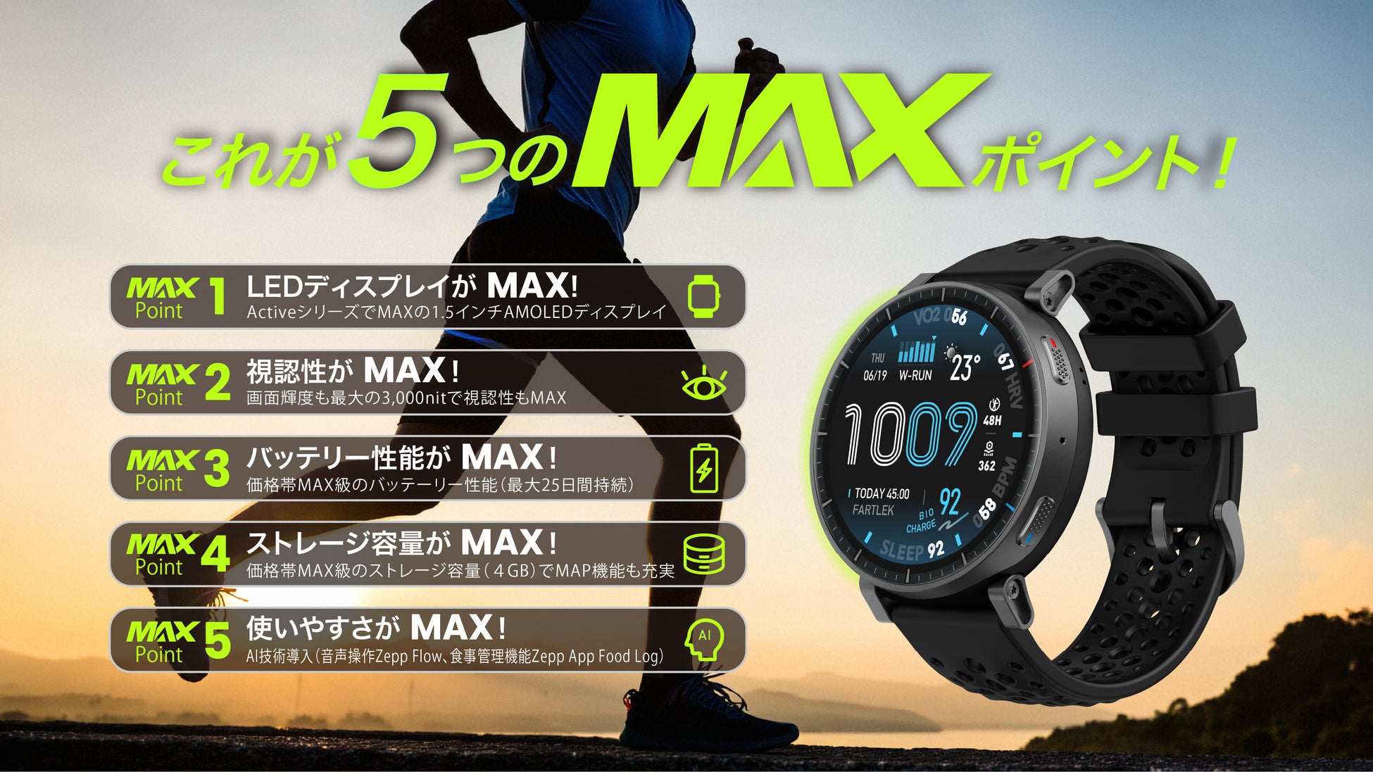 ■Amazfit Active Max「5つのMAXポイント」