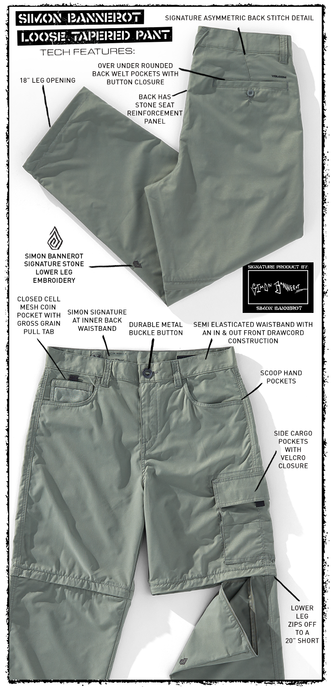 90 年代のスタイルからヒントを得たこの Skate Vitals パンツは、ルーズフィットスタイルでテイパード仕様となっている。驚くほどのストレッチ素材と軽量化された生地により、オーリーの時の引っかかりも全く気にならない。ジップオフで簡単にショーツに早変わりするのも嬉しい。裾にはドローコードも付いているので、踏んでトリックの妨げになることもない。左足下部には、サイモンのシグネチャーストーンもアクセントになる。