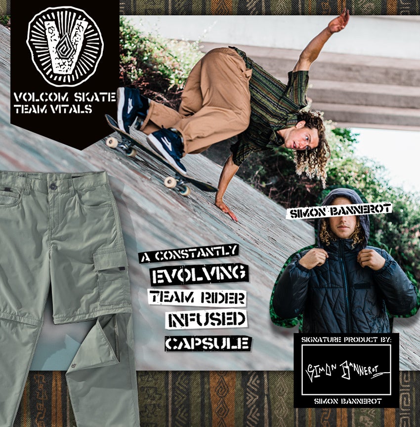 SKATE TEAM VITALS コレクションは、ストークする事を第一に、VOLCOMの中枢となるライダー達が持つ個性を反映し、彼らと共同でデザインしたコレクションになります。今回は、サイモンの意見とアートが落とし込まれたラインナップになっています。