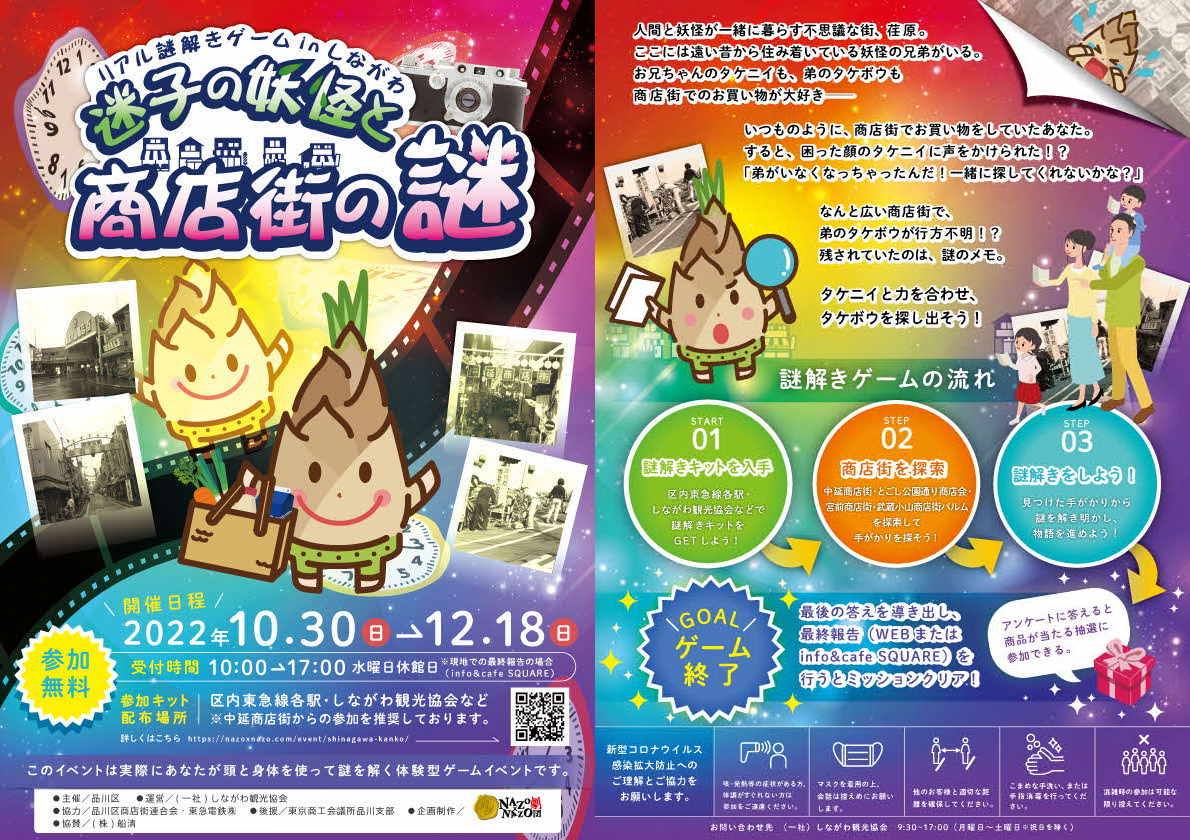 参加者は区内東急線各駅またはしながわ観光協会などで入手した謎解き冊子を使い、各商店街の謎を解いて巡ります。